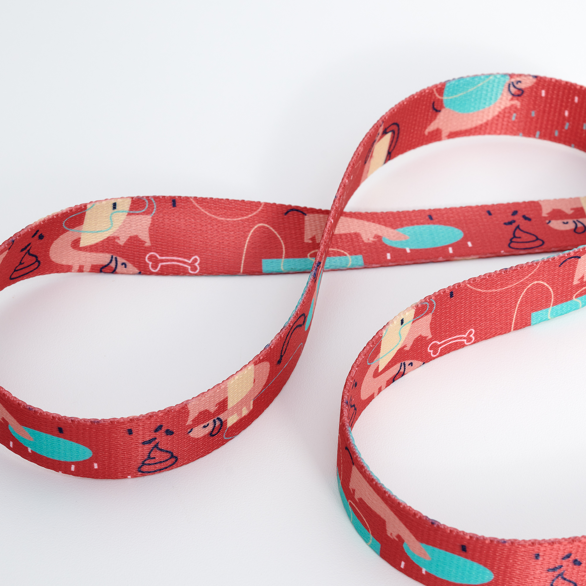 Podstawowym tworzywem, które wykorzystujemy w produkcji wszystkich smyczy, obroży i szelek jest taśma polipropylenowa. Jest to materiał wprost idealny do tego typu wyrobów: niezwykle lekki, przyjemny w dotyku a przy tym wytrzymały, odporny na uszkodzenia i zabrudzenia. Taśma jest dwustronnie zadrukowana metodą sublimacji w nasze autorskie wzory. Jest to druk wykorzystujący wysokie ciśnienie oraz temperaturę, w którym grafika staje się “integralną częścią” taśmy, także nie musisz obawiać się, utraty wzoru podczas prania lub użytkowania przez pupila w ciężkich warunkach.
