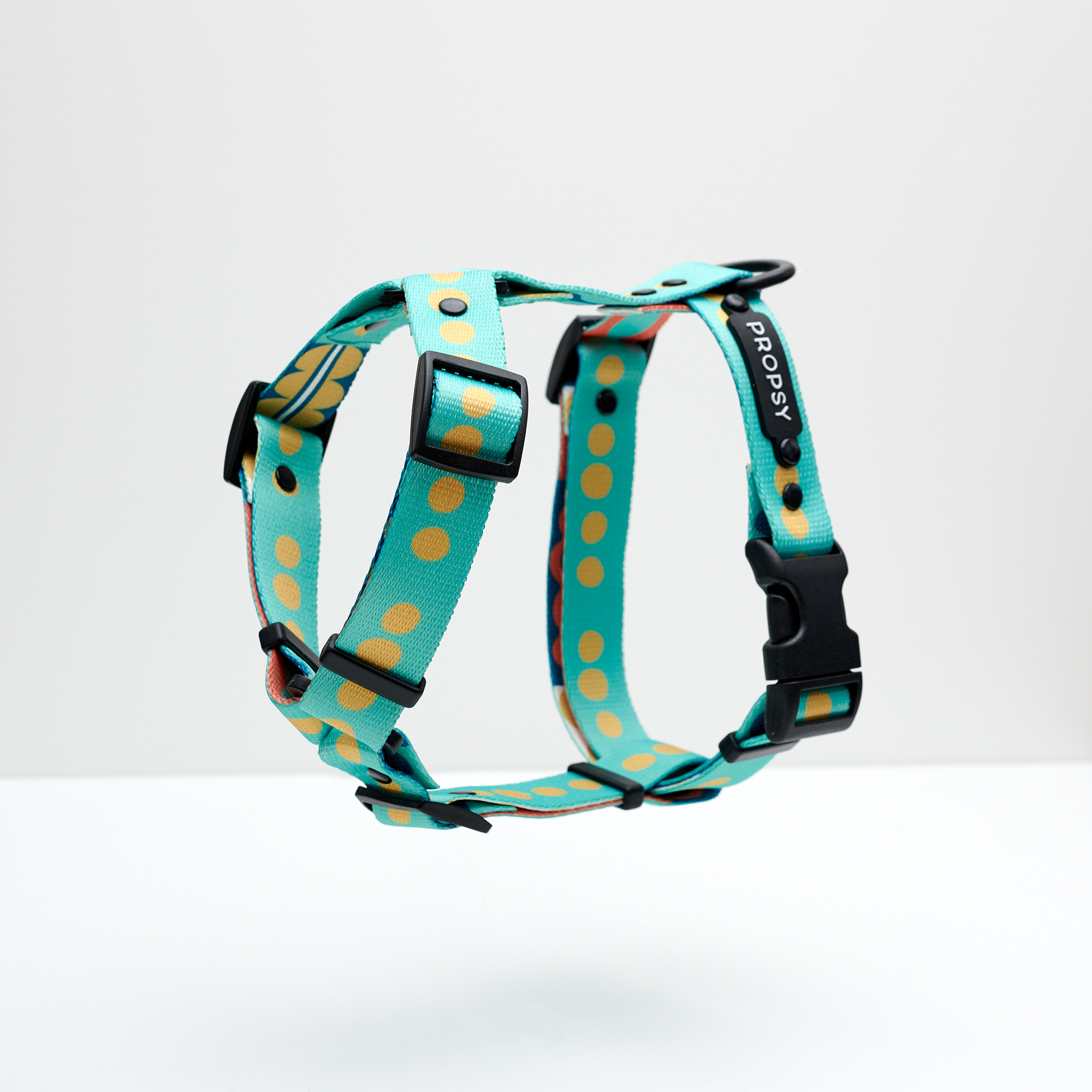 BASIC BLOOP to wzór ponadczasowy w swojej prostocie, ale bardzo pozytywny w wyrazie. Niebalane połączenie wzorów w stylu retro, w nowoczesnym wydaniu ubrane w energiczne kolory takie jak turkus i limonkowy żółty, to must have na wiosenne/letnie spacery z Twoim psiakiem. Dajemy gwarancję wyróżnienia się z tłumu !